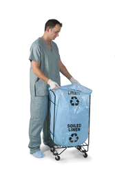 Soiled Linen Liners V. Soiled Linen Liners, Blue, 40" x 45.5", 1.0 Mil, Roll. Soiled linen liners are used in hospitals and healthcare facilities by housekeeping services to store used linens (bedsheets, hospital gowns, towels, etc.) that may have been exposed to bodily fluids. Work great with portable hampers. Printed with "Soiled Linen" in English and Spanish. Packaging: 100ea/cs