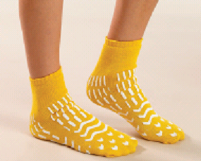 NovaPlus Private Label Confetti Treads Risk Management Patient Safety Footwear. Yellow. Adult XX-Large. Latex free. Confetti Treads by Albahealth® offers an extensive line of patient safety footwear focused on maximizing coverage and comfort for top of the line protection. The unique all-around tread profile provides 360° protection while the the ultra soft blend of yarns encourages compliance. Eco-Fetti Treads feature our exclusive blend of pre-consumer recycled and polyester yarns for the eco-conscience consumer. Yellow color helps to easily identify patients at risk for falls. UOM: 48PR/CS.